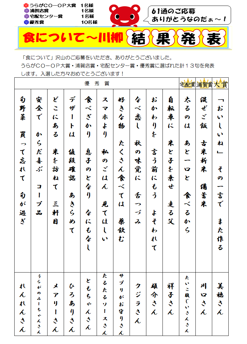 上記に関するお問い合わせ先:うらがCO-OP組織部