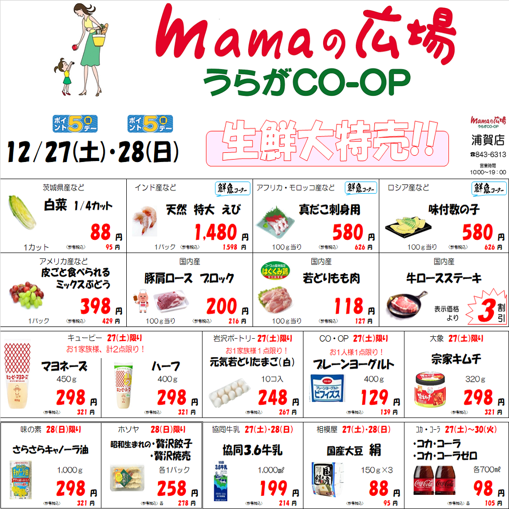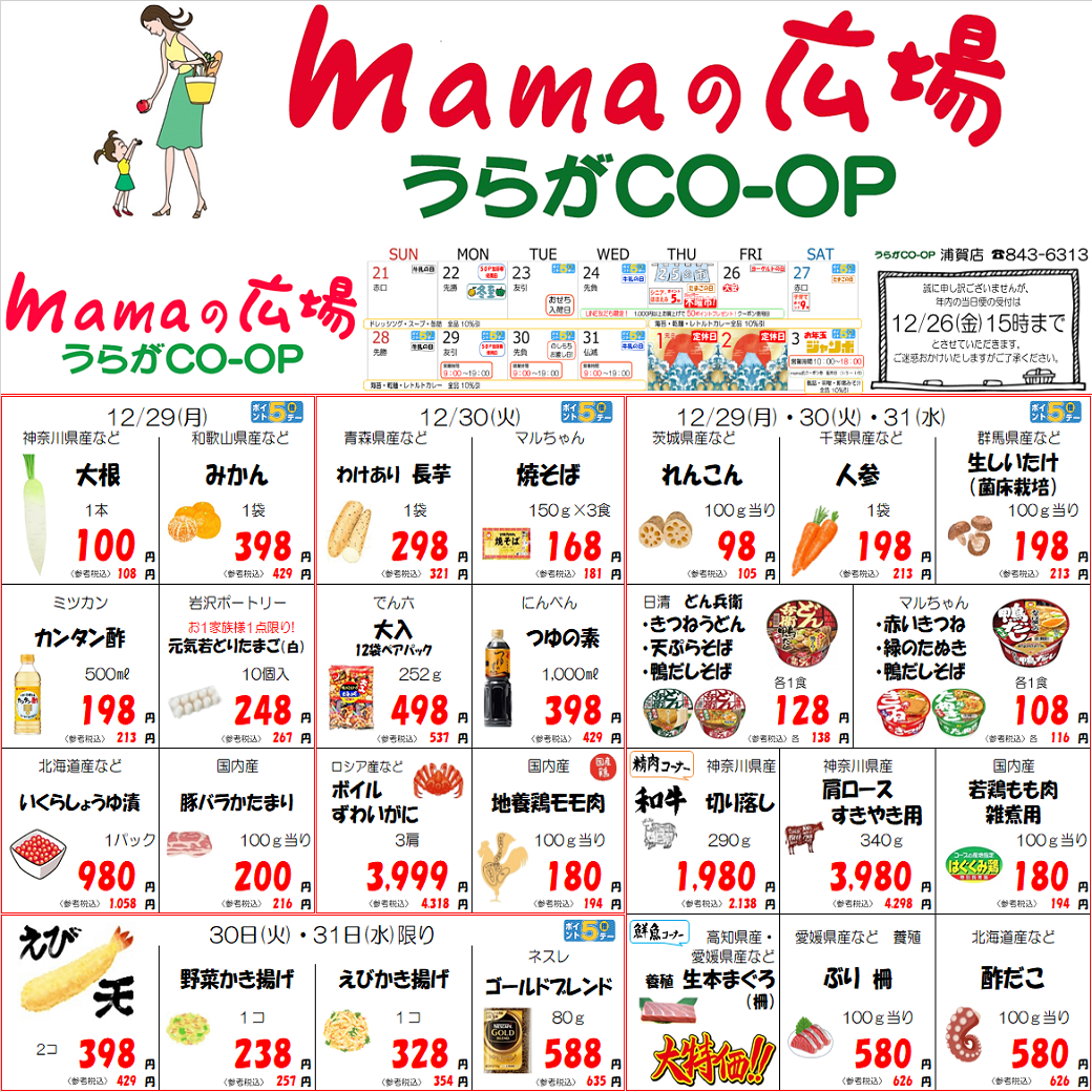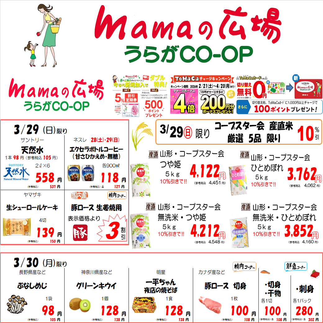 | ご利用可能決済 | ・現金 ・ToMaCA・クレジットカード(VISA Mastercard JCB AMEX DinersClub)※タッチ決済対応 ・PayPay ・楽天ペイ・auPAY・d払い ・うらがCO-OP商品券 |